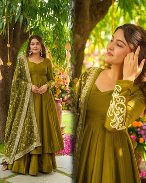 German Chiffon Heavy Embroidery Sequence Work With Lace Border* |