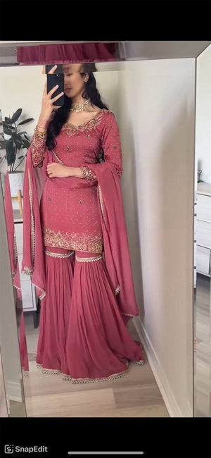 Rosewood Elegance Embellished Short Kurti with Gharara Set