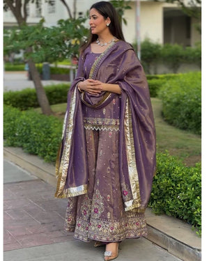 Luxurious Purple Embroidered Plazo Set for Cultural Events