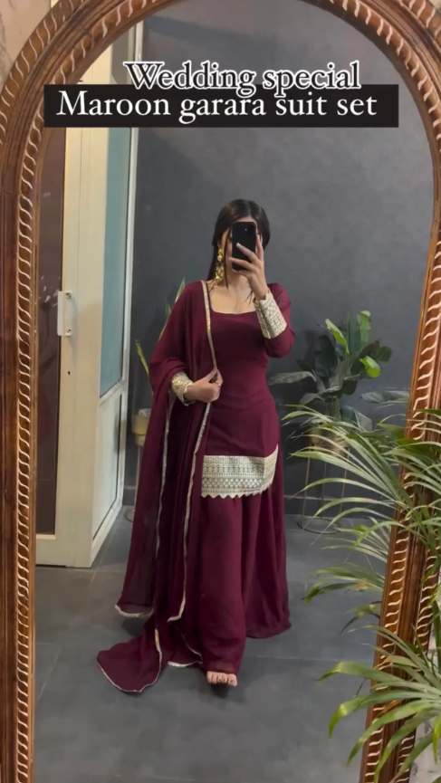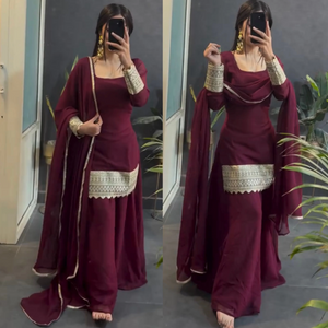 Maroon Garara Suit Heavy Star Georgette Silk Embroidery Work Sharara Suit