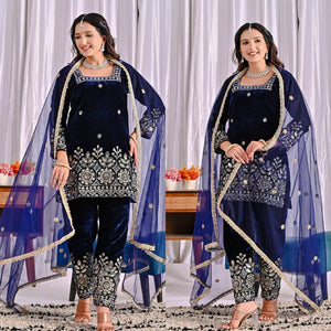 Premium Velvet Suit Adorned with Embroidery