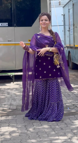 Heavy Faux Georgette With Embroidery Sequence Work Four Side Lace Border |